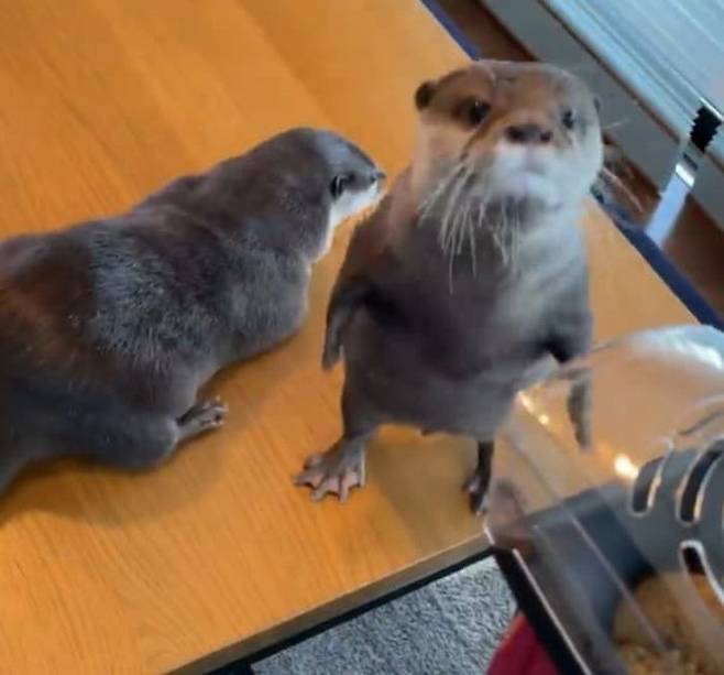 심지어 팝콘 냄새를 맡느라 정신 없는 두 수달들인데요. 그 모습을 본 집사는 수달들에게 방금 막 튀긴 팝콘을 주면 어떤 반응을 보일지 궁금했죠.