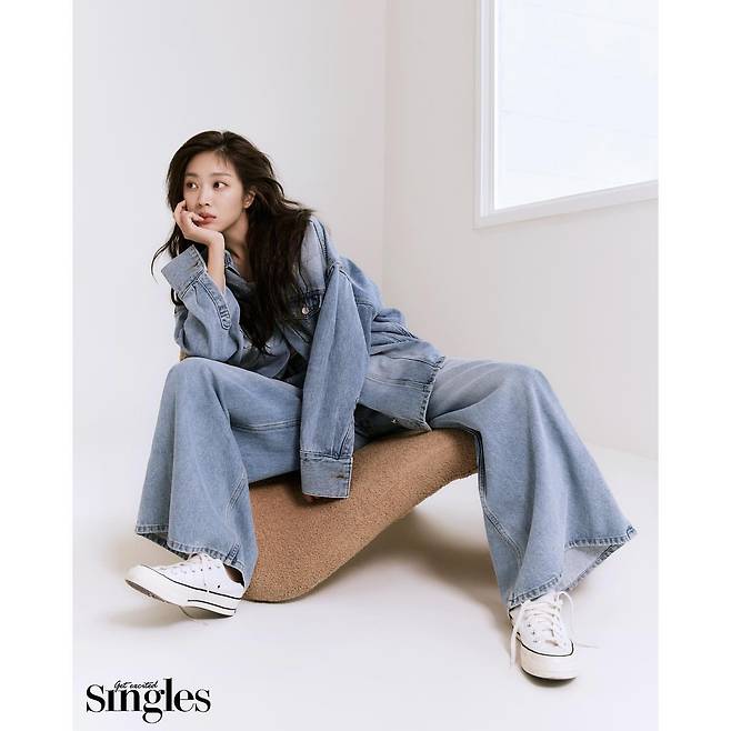 조보아는 데님 재킷과 와이드 팬츠로 구성된 데님 온 데님 룩을 선보였다. 넉넉한 핏의 팬츠와 오버사이즈 재킷이 편안함을 강조하며, 화이트 스니커즈로 캐주얼한 포인트를 더했다. 전체적으로 트렌디하면서도 자연스러운 스트리트 패션 감각이 돋보인다.