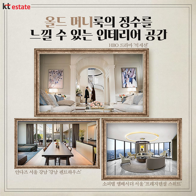 예시를 한번 볼까요? 최근 종영한 HBO의 드라마 ‘석세션’은 뉴욕의 미디어 재벌 집안을 다룬 작품인데요. 이곳에 나오는 뉴욕의 고급 아파트 및 저택 등은 올드 머니룩의 교과서적 인테리어라고 할 곳이죠. 한편, 국내에서는 이러한 올드 머니 인테리어를 보려면 주로 5성급 특급 호텔의 스위트룸을 찾으면 되는데요.