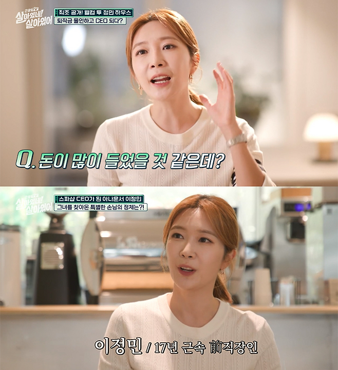 지난 연말 tvN STORY '살아있네! 살아있어'에 출연한 이정민은 창업하는 데 상상했던 것보다 돈이 많이 들었다며, 퇴직금 전부를 포함한 금액에 은행 대출을 받았다고 밝혔습니다.
