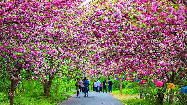 특히 이곳은 일반적인 벚꽃 명소와 달리 청벚꽃, 겹벚꽃, 왕벚꽃이 동시에 피어나는 시기로 더욱 주목받는다.