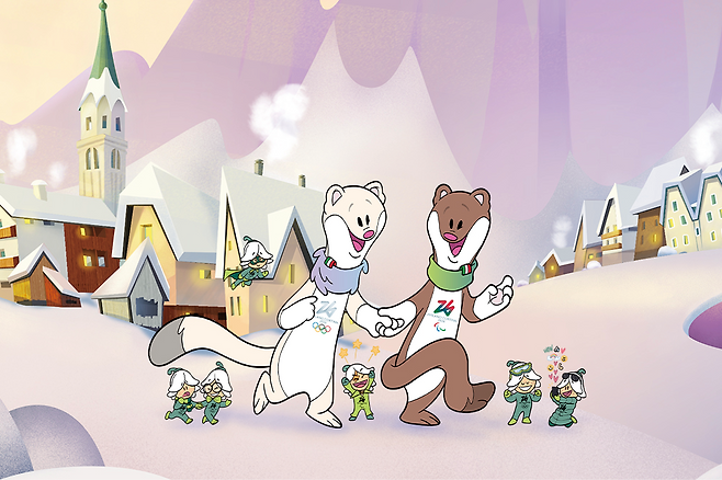 그렇게 탄생한 것이 바로 족제비 남매 '티나(Tina)'와 '밀로(Milo)'다. 밝은 털의 티나는 올림픽대회, 짙은 털의 밀로는 패럴림픽대회 마스코트다. 이들 이름은 개최 도시 밀라노(Milano)와 코르티나(Cortina)에서 따왔다. 왜 족제비였을까? 활발함과 속도감으로 이탈리아 정신을 구현하기에 이상적인 데다 계절에 따라 털 색깔을 바꾸는 적응력과 산악 환경에서 살아가는 회복력이 올림픽·패럴림픽대회 가치와 완벽하게 맞아떨어지기 때문이다. 특히 밀로는 한쪽 다리 없이 태어났지만 꼬리로 모든 장애물을 뛰어넘는 캐릭터로, 패럴림픽대회 정신을 완벽하게 구현한다.