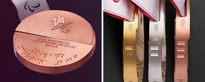 패럴림픽대회에서는 총 411개의 메달(금·은·동 각각 137개)이 수여된다. 지름 80mm, 두께 10mm의 메달은 이탈리아 국영 조폐공사 IPZS에서 100% 재생에너지로 제작한다. 금메달은 999은에 6g의 순금을 입힌 것으로, 친환경 무독성 코팅재를 사용해 지속가능성까지 고려했다.