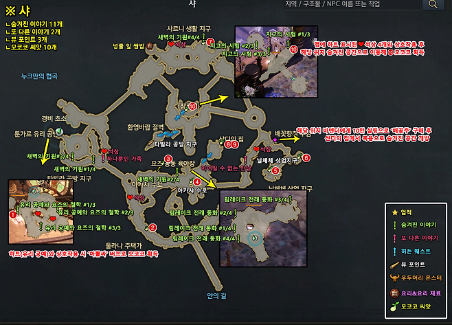 ※ 모든 이미지는 클릭하여 크게 볼 수 있습니다.※ 선행 퀘스트의 존재로 메인 퀘스트를 모두 완료한 후 수집을 추천드립니다.