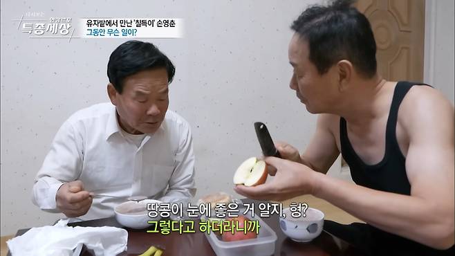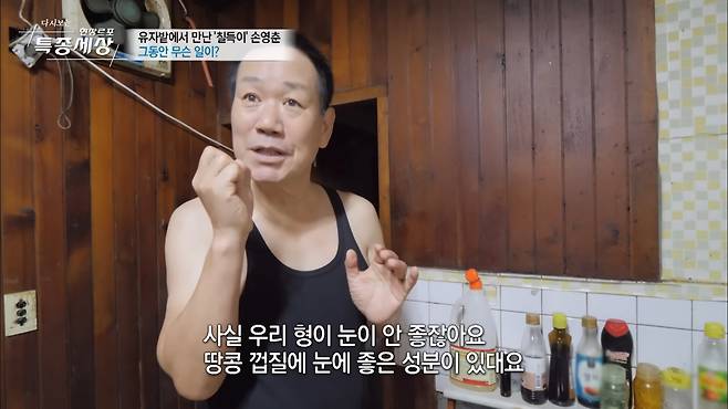 형을 위해 땅콩껍질까지 갈아 넣은 건강식을 만들고, 시력이 남아있는 한쪽 눈마저 노안으로 희미해져 가는 형님 곁을 떠날 수 없어 고향에 머물고 있다.
