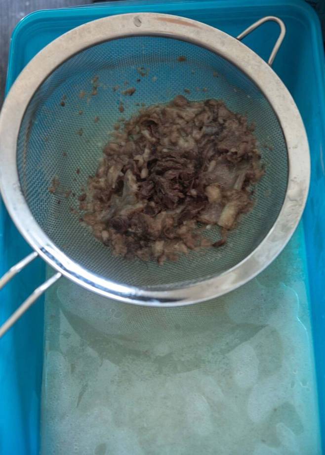 3. 국물이 뽀얗게 우러나면 뼈를 건져내고, 식힌 뒤 굳은 기름은 걷어낸다.