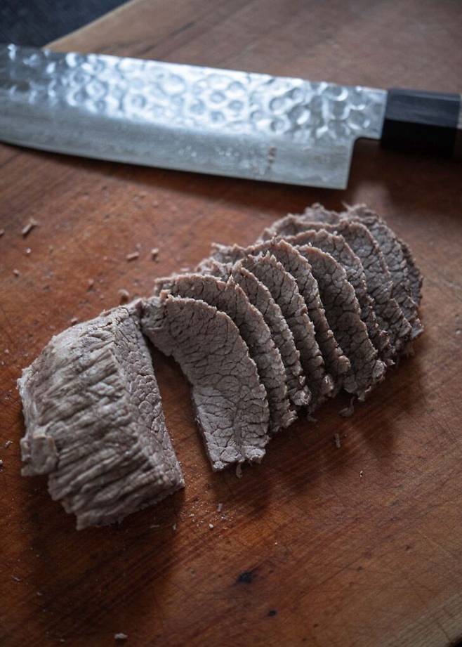 4. 양지머리를 넣었다면 부드럽게 삶아낸 뒤 결대로 찢어 국물과 함께 낸다.
