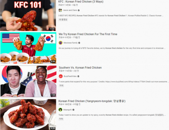 인기 비결로는 양념의 다양성이 꼽힙니다. 애초 미국식 닭튀김 요리지만, 양념, 간장, 허니버터 등 한국만의 시즈닝으로 차별화에 성공했다는 것인데요. 실제로 유튜브에 'Korean Chicken'을 검색해보면 해외의 높은 관심도를 확인할 수 있습니다. 세계적 치킨 브랜드 'KFC(Kentucky Fried Chicken)'를 'Korean Fried Chicken'으로 바꿔 부르기도 하죠.