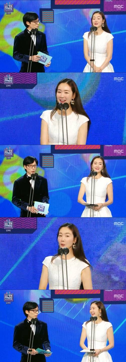 이날 대상 시상자로 유재석과 최지우가 등장했다.