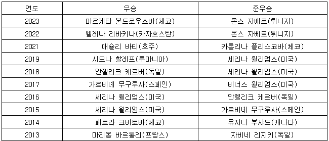 [표] 최근 10년간 윔블던 테니스 여자 단식 우승자