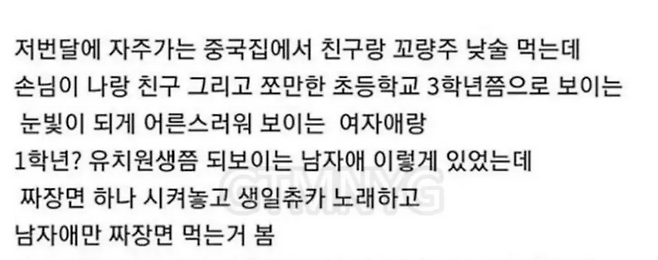 중국집에서 아이들 생일파티 하는걸 봤는데....