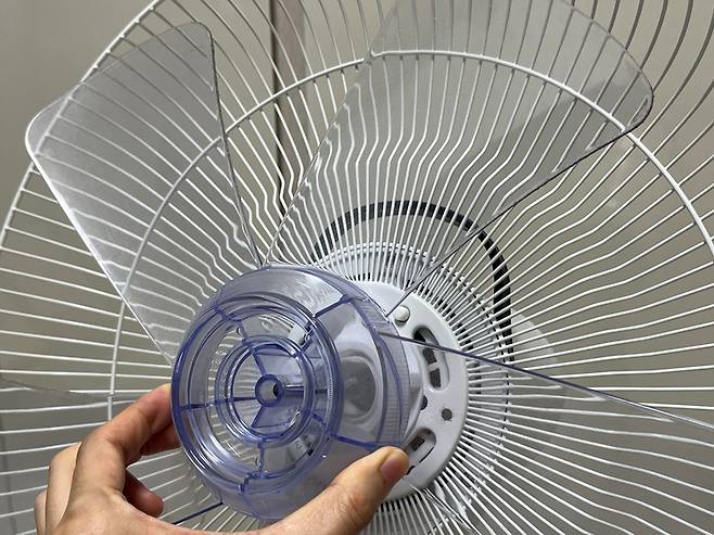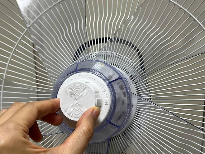 안쪽에 고정된 캡을 돌리면 쉽게 선풍기 날개를 분리할 수 있습니다.