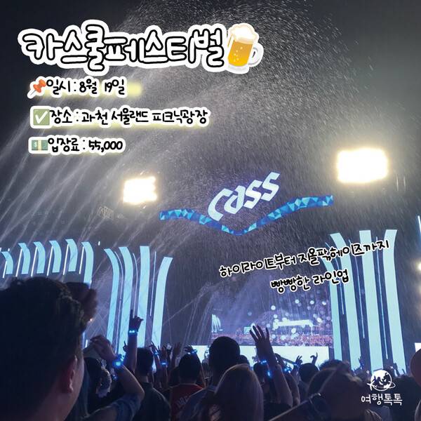 Blue Splash Stage, Lemon Squeeze Stage, CassCool Welcome Stage 3곳의 무대에서 비지정석으로 즐길 수 있어고 초대가수로는 하이라이트부터 지올팍, 선우정아, 헤이즈 등등이 있습니다.