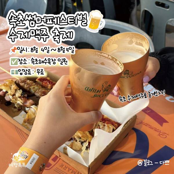 수제맥주 축제는 속초지역 수제맥주 제조업체 등 전국에서 13개 업체가 참가해 2일간 열리는 페스티벌입니다. 속초 대표 수제맥주 양조장인 크래프트루트와 몽트비어를 포함한 전국 각지 특색 있는 수제맥주 양조장이 참여한 EDM 힙합 장르 공연 그리고 속초 청년몰 상인들의 먹거리 부스까지 준비되어 있다고합니다.