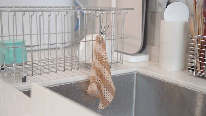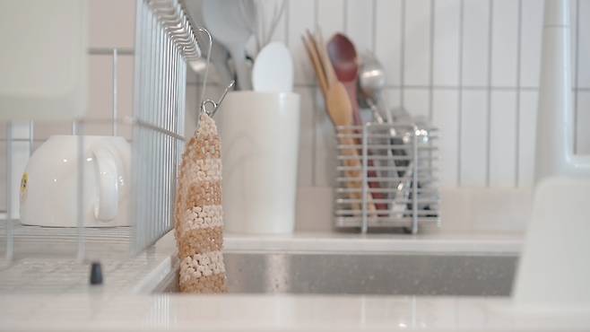 수세미 물기 관리도 오히려 편하고, 별도의 수세미 거치대가 필요 없어요. :)