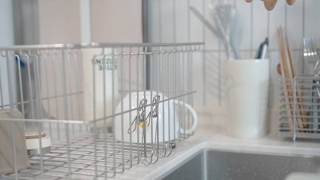 이걸 뒤집어서 걸어주면 스펀지 수세미 보관도 가능합니다. 보관하기 딱 좋죠? :)