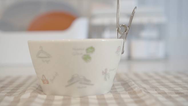 주방에서 집게 활용하는 꿀팁 하나 더 알려드릴게요! 요리할 때 조리도구 받침대 필요할 때가 있죠? 오목한 접시에 이 집게를 고정시켜주세요.