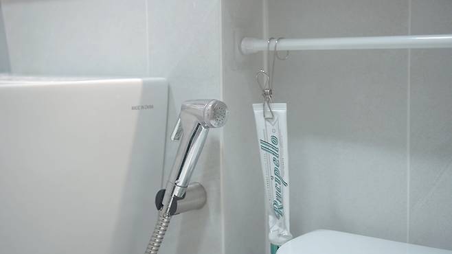 그리고 매일 사용하는 치약도 이렇게 공중부양해 놓으면 욕실이 훨씬 더 깔끔해 보이겠죠?
