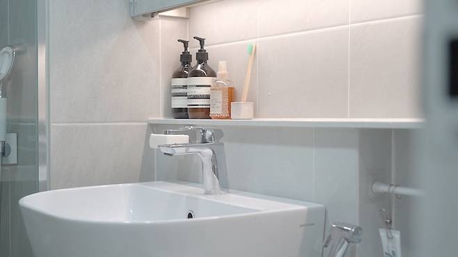 그리고 매일 사용하는 치약도 이렇게 공중부양해 놓으면 욕실이 훨씬 더 깔끔해 보이겠죠?