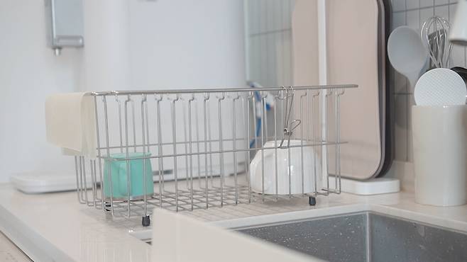 이걸 뒤집어서 걸어주면 스펀지 수세미 보관도 가능합니다. 보관하기 딱 좋죠? :)