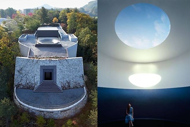 제임스 터렐의 작품은 LA 카운티미술관, 런던의 데이트 모던 뮤지엄, 휴스턴 미술관, 뉴욕의 구겐하임 미술관, 예루살렘의 이스라엘 뮤지엄 등 세계적 현대미술관에 소장되어 있는데요. 우리나라에도 그의 작품을 즐길 수 있는 미술관이 있습니다. 바로 강원도 원주의 산골짜기에 위치한 '뮤지엄 산'이 그곳인데요.