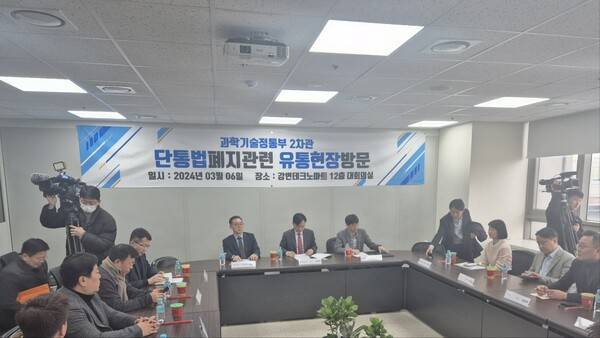 강 차관은 6일 강변 테크노마트에서 유통 업계의 상황을 점검하고 SK텔레콤(SKT)·KT·LG유플러스 등 이동통신3사, 전국이동통신유통협회(KMDA) 등과 만나 단통법과 관련된 현안에 대해 비공개로 이야기를 나눴다. 이에 통신업계 관계자들은 단통법 폐지의 취지에 공감하면서도 숨고르기가 필요하단 입장을 내비쳤다.