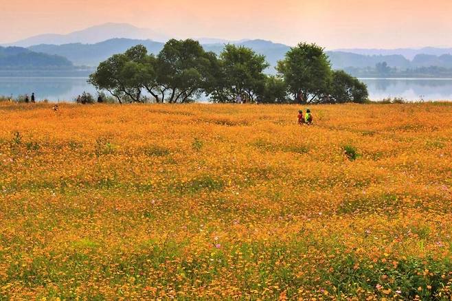 황화 코스모스가 아름답기로 소문난 물의 정원은 해질 무렵의 북한강 풍경과 코스모스의 황금 들판이 아름다운 조화를 이루어 수도권의 드라이브 코스로도 알려져 있다.