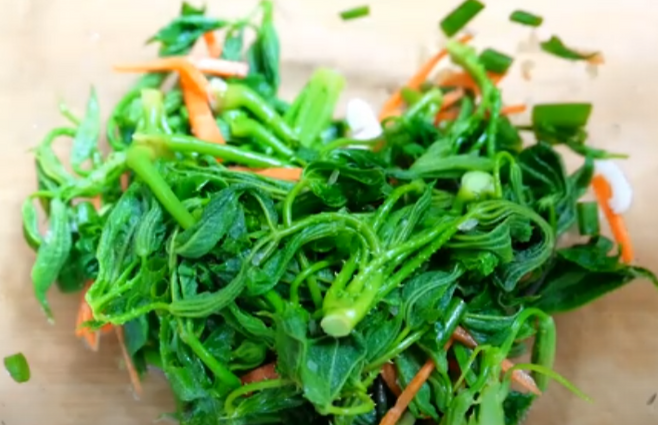 식히기: 데친 엄나무순은 즉시 찬물에 담가 식힌 후, 물기를 꼭 짜줍니다. ❄️