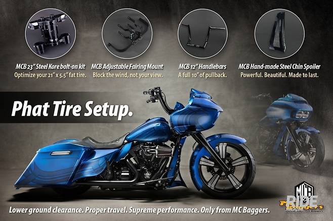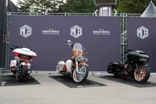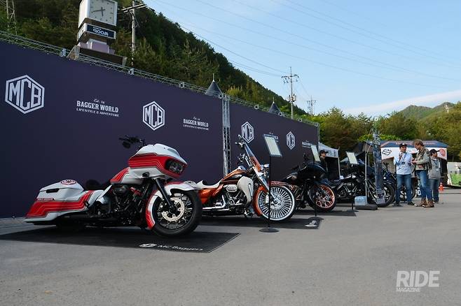 멀리서 봐도 무게감 있는 검정색 배경의 배경판에 고급스러운 로고가 돋보이는 엠씨배거의 부스에는 할리데이비슨 라이더라면 도저히 눈을 뗄 수 없게 만드는 시승차와 전시차들이 자리 잡고 있다. 모델마다 존재감과 개성이 워낙 강해 어떤 모델로 작업을 한건지, 어디를 어떻게 바꾼건지, 작업비용은 얼마나 들어간건지 쉽사리 물어보기도 힘들 정도다.