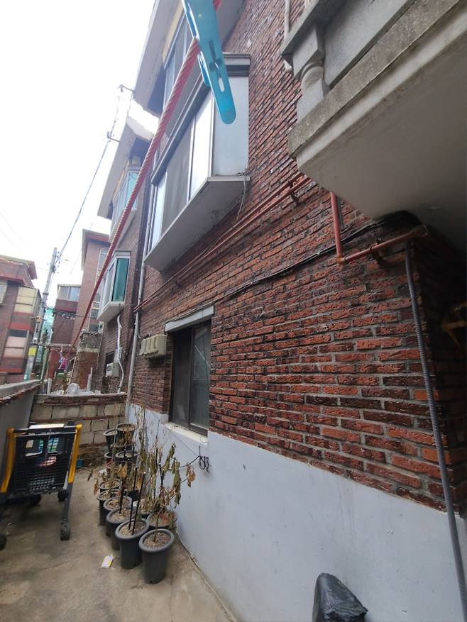 외벽은 이런 벽돌 건물인데, 코팅제 같은 걸 바르는 것이 도움이 되려나 싶네요