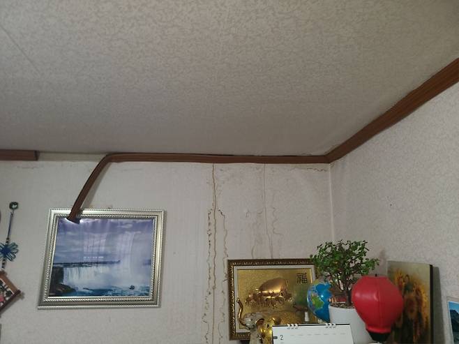 이번 주에 비가 왔다 하여 다시 가봤는데, 천정에 저런 자국이 남았네요 -_-;;;