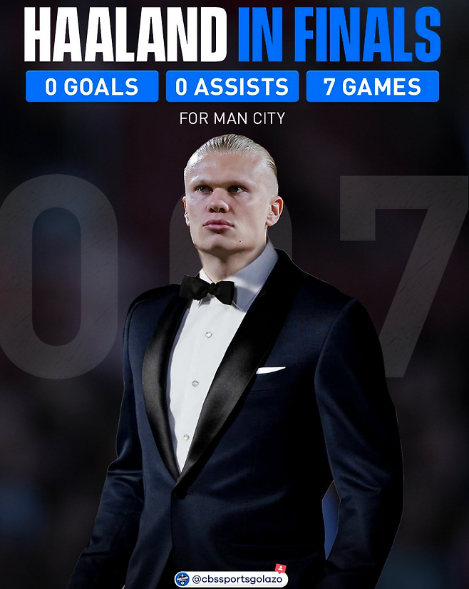 홀란이 부담감을 이겨내지 못하고 마르무시에게 공을 건넨 거로 보인다. 결승전에서 첫 골을 넣은 절호의 기회였으나, 결승전 득점은 다음 경기로 미뤄졌다. 홀란은 맨시티 이적 후 결승전을 7번이나 소화했다. 다만 아직 골 맛을 보지 못했다. 결승전만 가면 한없이 작아지는 모습을 보여 ‘새가슴’이라는 오명이 붙었다. 이번에도 그 오명을 떨쳐내지 못했다.