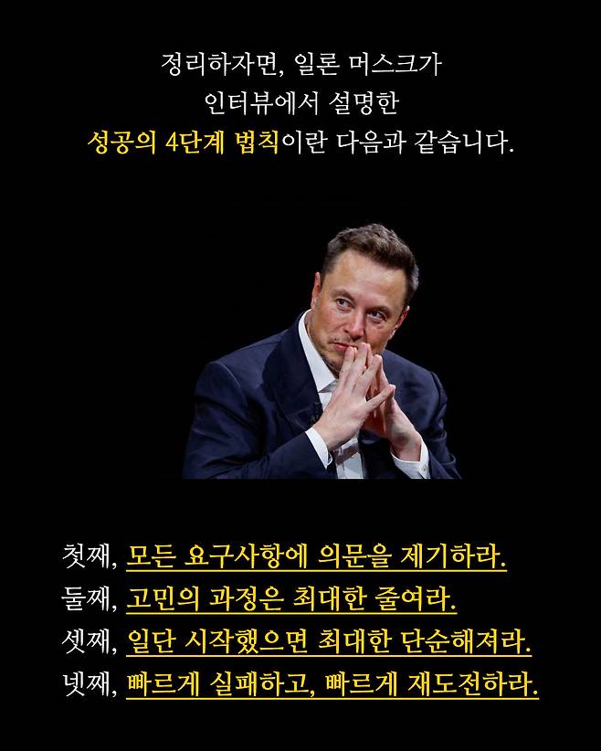 "이것만 기억하세요." 일론 머스크가 설명하는 '성공의 4단계'