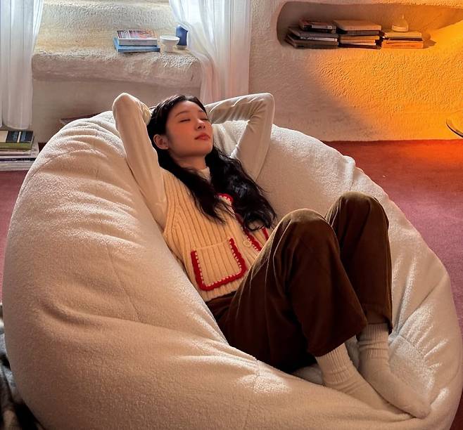 니트 베스트에 코지해 보이는 팬츠를