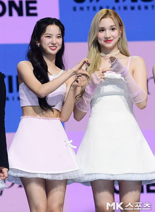 미디어쇼케이스에 앞서 케플러 최유진과 휴닝바히에가 포토타임을 갖고 있다.