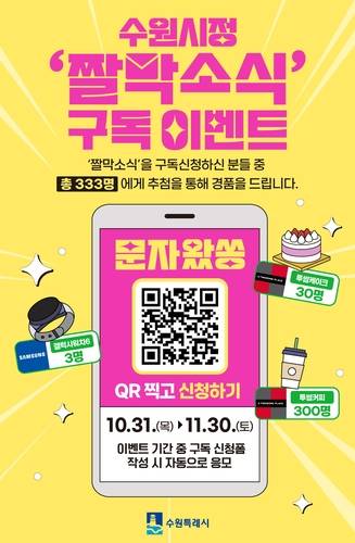 수원시, '수원시정 짤막소식' 구독자 이벤트 진행