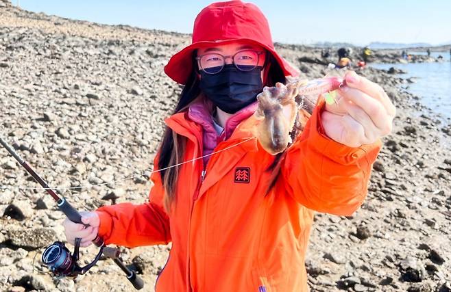 인쇼어 루어 낚시대와 무늬오징어 에깅
