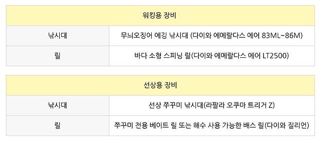 워킹과 선상 쭈꾸미용 장비의 선택 방법