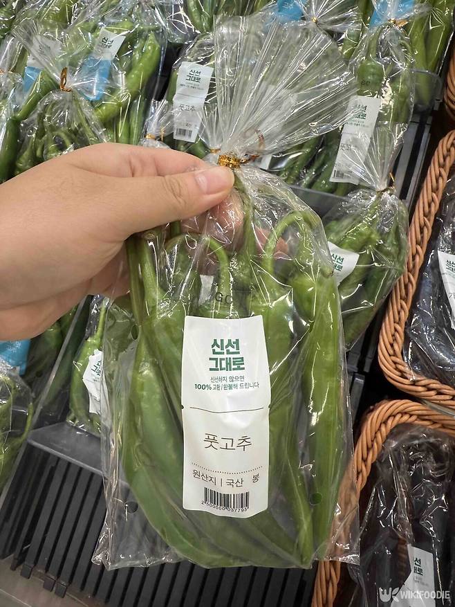 풋고추 고를 때는 껍질이 매끈하고 색이 짙은 초록색을 띠는 것이 신선하며, 꼭지가 싱싱하게 붙어 있는 것이 좋다.
