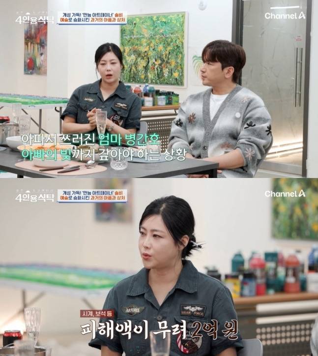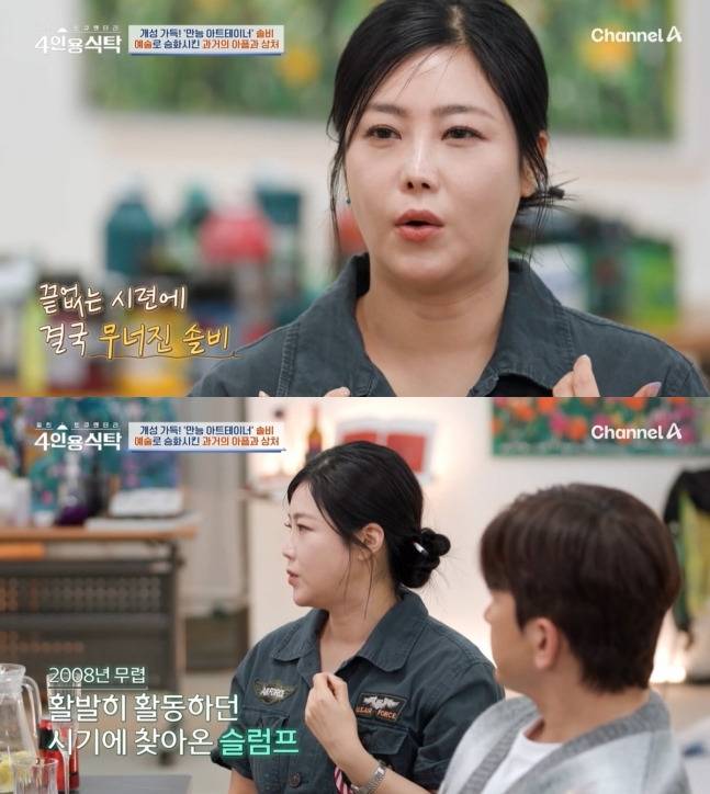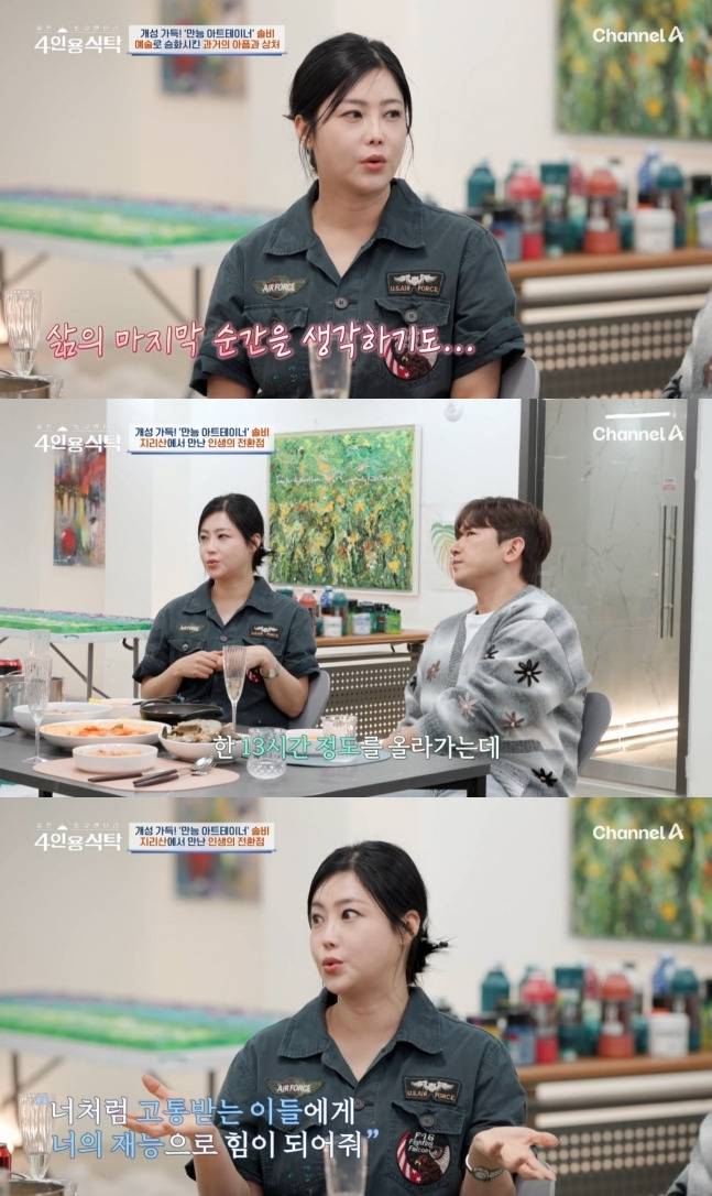가수이자 화가로 활동 중인 솔비가 인생의 깊은 골짜기를 지나 다시 붓을 들게 된 사연을 털어놓았다. 지난 21일 방송된 채널A '4인용식탁’에 출연한 솔비는 과거의 고통과 재기의 시작점을 솔직하게 전했다.