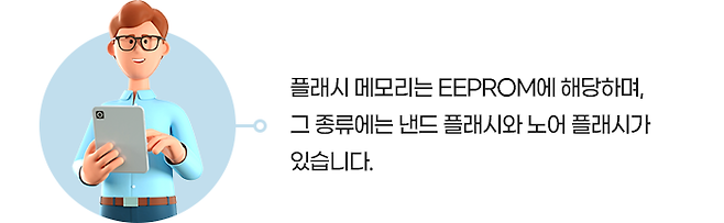 롬은 원래 읽기만 가능하지만 특별한 기능을 활용해서 지우고 쓸 수 있도록 발전시킨 것을 EEPROM이라고 합니다.