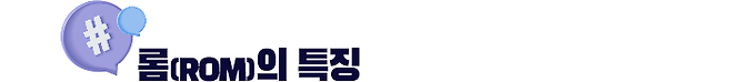 롬은 컴퓨터를 켰을 때 자동으로 실행되는 프로그램인 바이오스(BIOS: Basic Input Output System)가 들어있는 메모리가 대표적입니다. 컴퓨터 메인보드에 부착되어 있습니다.