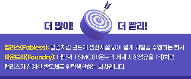 시스템 반도체 산업은 삼성이나 인텔처럼 설계부터 제조까지 전체를 담당하는 종합 반도체 기업도 있지만 대부분은 설계(팹리스, Fabless)와 생산(파운드리, Foundry)이 분업화된 구조를 가지고 있습니다.