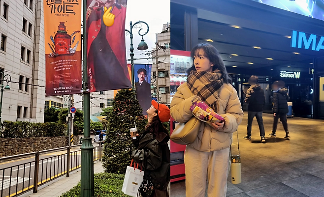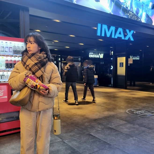 아이맥스 영화관 앞에서 촬영된 이 사진에서 곽선영은 퀼팅 패딩 점퍼와 체크 머플러로 보온성과 스타일을 모두 잡았다. 여기에 크림색 팬츠와 간단한 크로스백을 더해 캐주얼하면서도 정돈된 외출 룩을 완성했다. 손에 든 간식 봉지는 그녀의 소소한 일상을 잘 보여준다.