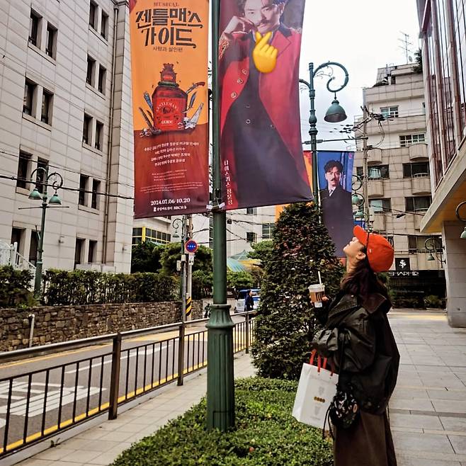 거리에서 뮤지컬 포스터를 바라보는 곽선영은 오버사이즈 야상 재킷과 레드 캡으로 빈티지하면서도 트렌디한 매력을 발산했다. 여기에 크로스백과 쇼핑백을 더해 실용성을 강조했으며, 손에 든 커피가 여유로운 도시인의 이미지를 완성시켰다.