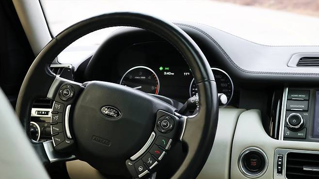 레인지로버의 디자인은 그런 식으로 발전해 온 것이다. 한눈에 들어오지는 않지만, 남다른 디테일이 첨부되어 있다. 그 차이는 쉽게 발견할 수 있다기보다도, 대중적인 자동차와는 다른 은은한 분위기를 발현한다. 실내 디자인도 단정한 편이다. 놀랐던 점은 클러스터가 풀 LCD 방식이었다. 확장성이 요즘 차량처럼 다양하진 않더라도, 직관적인 시인성과 깔끔한 UI가 고급 차량 다운 면모였다. 그리고 시동을 걸면 다이얼 변속기가 솟아오른다. 그 부드럽고 정교한 메커니즘은, 최근 양산 브랜드의 다이얼식 변속기와 다른 차원의 감성이었다.