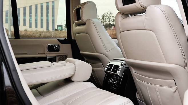 최근 차량들과는 다르게 센터페시아에 많은 버튼들이 배치되어 있다. 그만큼 당시에 가능한 수많은 기능들을 첨부하기 위한 흔적이라 볼 수 있겠다. 베이지 컬러의 가죽과 하이그로시 패널, 알루미늄 등으로 마감한 내장 소재의 고급감은 명불허전 럭셔리 SUV의 모습이다. 당연 뒷좌석도 고급스러운 면모를 보여준다. 모니터, 전동시트 같은 다양한 VIP 옵션은 물론이고, 시트는 두껍고 부드럽다. 트렁크가 위아래로 개방되는 스플릿 게이트 또한 과거에서부터 현재까지 연결되는 레인지로버만의 감성 요소다. 가볍게 걸 터 앉기에 안성맞춤이다.