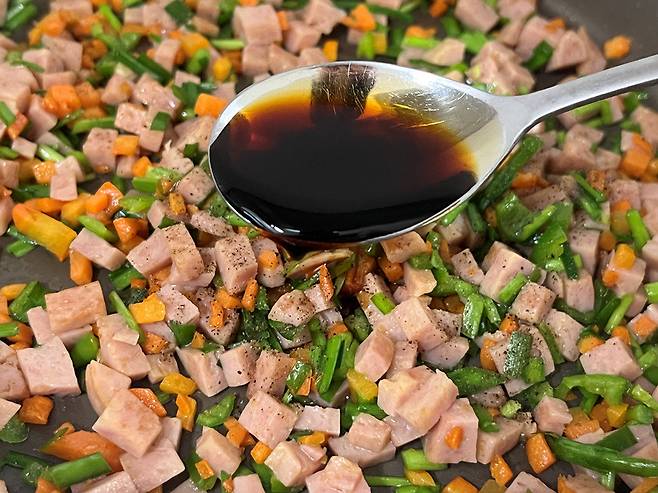 후추 살짝 넣고 간장은 2스푼을 넣어 간을 해줍니다.
