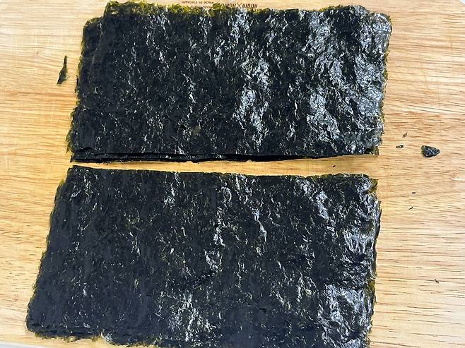 김 3~4장을 1/2 등분하여 준비하세요.