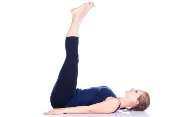 매트에 등을 대고 누운 상태에서 상체를 약간 들어 올립니다. 두 다리를 공중으로 곧게 뻗습니다. 왼쪽 무릎을 가슴 쪽으로 당기며 오른쪽 다리는 그대로 뻗은 상태를 유지합니다. 왼쪽 다리를 되돌리고 이번에는 오른쪽 무릎을 당깁니다.